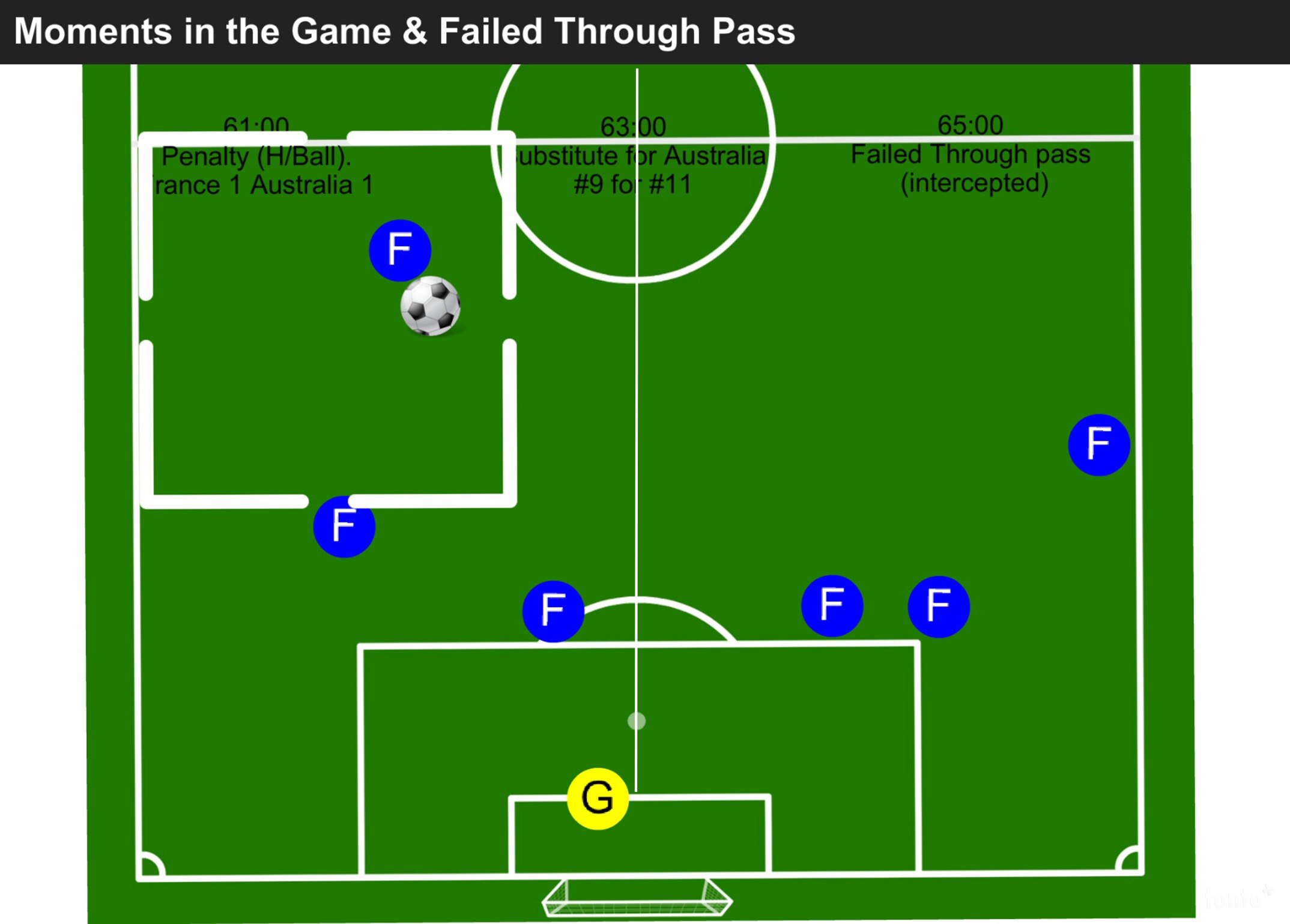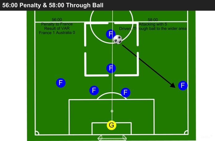 Game Changing Moment: A second penalty. The Australian’s look to enhance their Attack. France retain their plan, yet are less successful. Mental dominance is with the Australians.